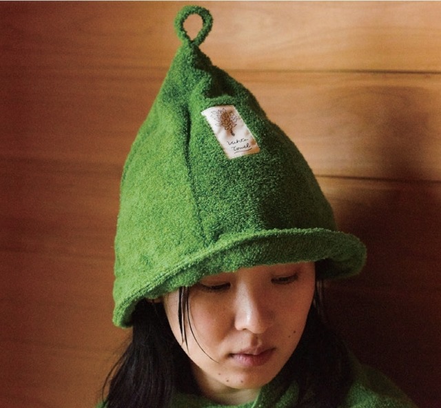 今治のタオル職人が 白樺の繊維でつくったサウナハット フィンランド政府観光局コンセプト監修の元、 白樺の繊維でつくったサウナハット。 サウナの中で視界を遮り、穏やかに過ごせるようやや大きめの サイズに設計し、つばを折ることで視界を調整できる仕様です。 01 フィンランドの自然からうまれた「森のタオル」 レーヨンに白樺の繊維を配合した独自の糸を紡績会社と 協力し開発。肌触りからフィンランドの自然を感じられるサウナハットです。 フィンランドの自然を感じる 新たなタオル体験を Vihta Towel サウナハット サイズ: 周囲(内)70.5cm x 高さ24cm(つば5cm) パッケージサイズ:W27.5cm x H20cm 素材:コットン65%、レーヨン35% 肌に触れた際の心地よい質感を重視しつつ、しぼりやすさと 速乾性も考慮したヴィヒタタオルオリジナルの生地を使用して います。 浴場内にあるフックにかけられるよう、頭頂部にループ付き 水気を含んだ状態でも、持ち運びに便利な防水パッケージ入り 02 フィンランドの自然を象徴するカラー展開 生地はコットン糸とレーヨン糸の染まり具合が異なることで、 微妙に違う2つの色彩が混じりあっています。その美しさで、 フィンランドの豊かな自然を表現しました。 フィンランド政府観光局監修のもと(※ラッカ、コイヴ、キヴィ 除く)、フィンランド語で名付けられたカラー展開です。 ◇ヴィヒタ(グリーン):白樺の若枝を束ねたもの。初夏や春の象徴。 ◇ヤルヴィ(ブルー):湖大国であるフィンランドの湖の色。 ◇カーモス(ネイビー):フィンランドの冬の極夜、日の登らない昼。 ◇ ラ ッ カ( オ レ ン ジ ): 水 辺 に 自 生 す る 、鮮 や か な ベ リ ー の 彩 り 。 ◇コイヴ(ベージュ):北欧の森に立つ白樺の樹皮の色。 ◇キヴィ(グレー):ロウリュに欠かせないサウナストーンの色。 ◇ヴィティ(ホワイト):ふかふかの雪。新雪を表した色。