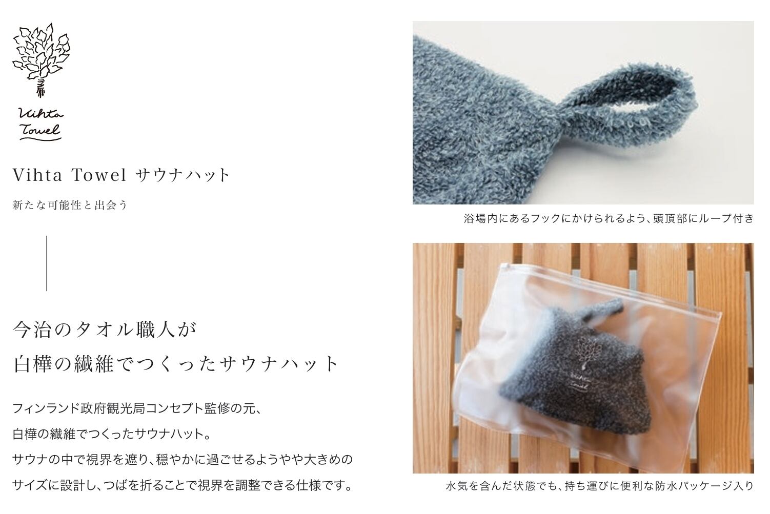 協力し開発。肌触りからフィンランドの自然を感じられるサウナハットです。