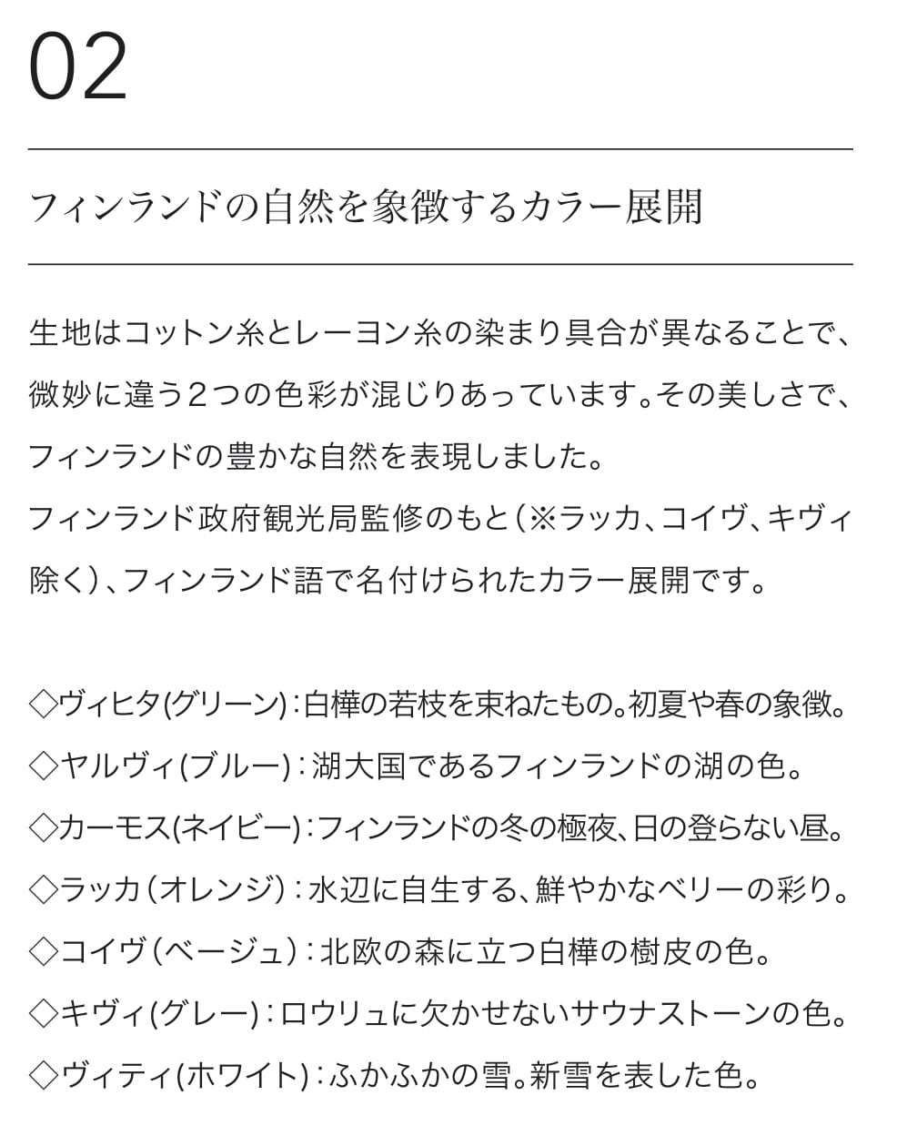 フィンランドの自然を象徴するカラー展開