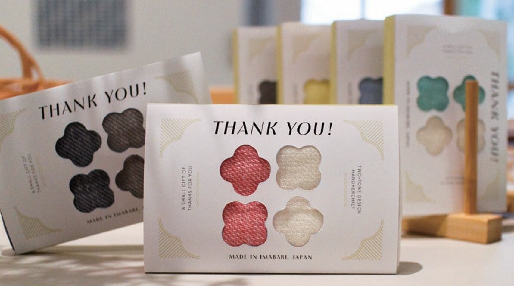 ありがとう!の気持ちをまっすぐに伝えるツートンカラーのギフトハンカチ